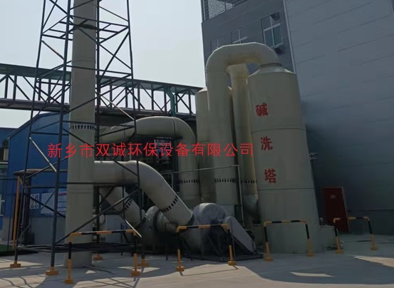 廢氣進(jìn)入噴淋塔經(jīng)過填料層后,廢氣與氫氧化鈉吸收液發(fā)生氣液兩相全接觸吸收和中和反應(yīng),酸霧廢氣經(jīng)凈化后,經(jīng)除霧板脫水除霧后,達(dá)到排放標(biāo)準(zhǔn),由風(fēng)機(jī)排入大氣,吸收液由塔底水泵加壓后從塔頂向下噴淋,最后回流至塔底循環(huán)使用。