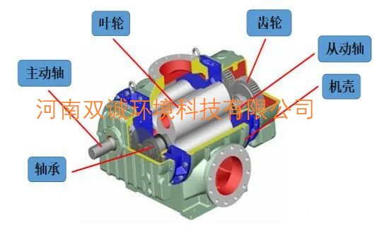 羅茨風(fēng)機主要由機殼、葉輪、傳動軸、齒輪、軸承等組成。